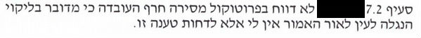 דוגמה לתגובה מתנערת של קבלן על ליקוי שלא דווח ותועד בפרוטוקול המסירה